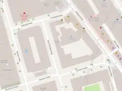 Greenwell Street is located in the Fitzrovia district of the City of Westminster in London. It was built in the late eighteenth century and runs between Bolsover Street in the east and Cleveland Street in the west. Great Titchfield Street joins it on its south side. It was formerly known as Buckingham Street[1] but was renamed in 1937 to remember the Greenwell family who were prominent in the Marylebone area. James Hugo Greenwell and his son Walpole Eyre Greenwell both served as vestry clerks in the nineteenth century.[2] The street forms the northern edge of what is known as the "Carburton Street triangle" but which is actually a trapezoid with Carburton Street along the base.[1]