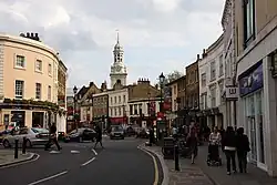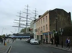 Greenwich Church Street is a street in central Greenwich in South East London. It diverges from Greenwich High Road at St Alfege Church and curves north through the commercial centre of the town until it reaches the Cutty Sark by the River Thames. College Approach branches off it east towards King William Walk and the Old Royal Naval College. It is located in the middle of what was medieval Greenwich.[1][2] Its current configuration dates back to the redevelopment of Greenwich in the 1820s by the architect Joseph Kay, but is based on a much older road marked as Greenwich High Street or Church Street on a late seventeenth century map.[3] It runs through the heart of central Greenwich, close to the Cutty Sark DLR station, and has many shops and restaurants. An entrance to Greenwich Market is located on the east side of the street.