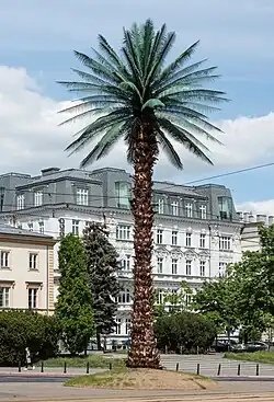 Greetings from Jerusalem Avenue (Polish: Pozdrowienia z Alej Jerozolimskich) is a site-specific artwork in the form of a life-size artificial date palm. It was designed by Polish artist Joanna Rajkowska, and is located on the Charles de Gaulle Roundabout (Rondo gen. Charles’a de Gaulle’a), where Jerusalem Avenue intersects with Nowy Świat street in the Polish capital of Warsaw. It was erected on December 12, 2002.