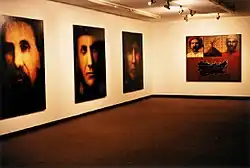 "The images are based on old photographs from Russia which Edmonson uses as raw material - selecting fragments and snippets of characteristics from different individuals, the common people, reinterpreting and creating new faces that are amalgamations of several..."[2] Edmonson's use of shadows metaphorically suggests the fragmentary nature of history and memory - parts hidden from view, others slowly emerging from which we can begin to formulate an understanding of the whole. In a 1994 artist's statement, Edmonson commented that an earlier interest in tar pits in Alberta led to his archeological interpretation of memory: "where amongst the dark matter of tar have been found the remnants of life forms, which act as a kind of physical symbol of how time displaces history and memory."[2]