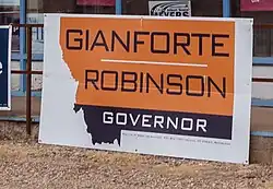 On January 20, 2016, Gianforte announced his candidacy for the Republican Party's nomination for governor of Montana in the 2016 election.[182] A citizen of Butte filed a political practices complaint against him, alleging that he began campaigning before registering; the complaint was dismissed.[183][184][185]