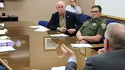 The Gallatin County Sheriff's Office cited Gianforte for misdemeanor assault.[116][117] On August 25, 2017, he was briefly booked into jail, fingerprinted, and had his mugshot taken, after his legal team lost a bid to avoid that process.[118][119][120] On October 10, 2017, Gianforte's mugshot was released publicly by a Gallatin County court order.[121]