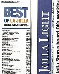 La Jolla Light "Best of 2022" - ^ Fark, Bill (July 7, 2004). "July art scene includes two new Escondido galleries". San Diego Union-Tribune. Retrieved March 25, 2019.
