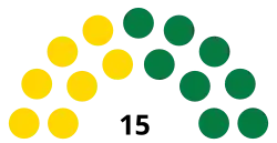 Last election 62.47%, 15 seats 25.08%, 0 seats