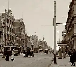Grenfell Street (34°55′26″S 138°36′07″E / 34.924°S 138.602°E) is a major street in the north-east quarter of the Adelaide city centre, South Australia.[2] The street runs west-east from King William Street to East Terrace. Its intersection with Pulteney Street is formed by Hindmarsh Square. On the west side of King William Street, it continues as Currie Street towards West Terrace.