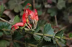 Grevillea infundibularis, commonly known as fan-leaf grevillea,[2] is a species of flowering plant in the family Proteaceae and is endemic to a restricted area in the south of Western Australia. It is a spreading to low-lying shrub with egg-shaped to hemispherical leaves and clusters of four to eight bright red flowers.