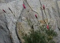 Grevillea petrophiloides, commonly known as pink pokers,[2] rock grevillea or poker grevillea,[3] is a species of flowering plant in the family Proteaceae and is endemic to the south-west of Western Australia. It is an erect shrub with divided leaves, the lobes mostly linear, and cylindrical clusters of usually pink to reddish pink and bluish-grey flowers.