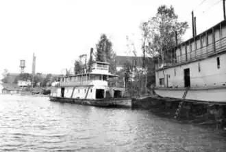 Grey Eagle was used to tow logs in the Salem area in the late 1890s.[2] In 1903, under Capt. Arthur Riggs, Grey Eagle became the last commercial steamboat to run up the Willamette River to the landing at Junction City, Oregon.[3] After this, aside from an occasional log tow, no steamboat operated any further upriver than Corvallis.[3]
