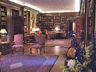 James Pinchot died in 1908, and his wife, Mary, died 10 days after Gifford married Cornelia Bryce in August, 1914. He and his brother Amos split the estate, with Amos taking the half on which a small forester's cabin was the main dwelling and Gifford taking the house. The couple began spending their summers at Grey Towers. Cornelia realized that Gifford's developing political career, and hers (she ran for Congress three times),[15] required a residence more suited to entertaining guests than it had originally been intended to be, and set about modernizing the house. At her behest, many alterations were made to the original first-floor plan. The most significant involved merging the dining and breakfast rooms to create a large sitting room, and similarly enlarging the library by adding the living room to it. "The first thing my wife did", Pinchot told the Saturday Evening Post in 1922, "was to break down the partition walls and let in light and air ... [O]f course, it's a vast improvement."[7]