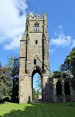 Greyfriars, Richmond was a friary in North Yorkshire, England. Its bell tower still survives and dates from the 15th century.[1] Its establishment as a friary is attributed to Ralph Fitz Randall in 1258. His heart was buried there in 1270. During the Crusades, Archbishop Romanus requested that two priests be sent from the friary, one there and one to Copeland (Cumberland).[2] In 1304, an "apostate friar", Arthur of Hartlepool, upon being arrested, was sent to the friary for punishment.[3] It was surrendered 19 January 1538, after it had accumulated five and a half acres of land from William de Huddeswell (in 1364) and John de Nevill (in 1383).[4][5]