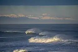 Köppen-Geiger climate classification system classifies its climate as oceanic (Cfb).[4] The mean annual rainfall Greymouth receives is high by New Zealand standards and is distributed relatively evenly throughout the year.[5] This is due to its position receiving marine westerlies throughout the year that often do not rise above the Southern Alps. As a result, it creates a rain shadow effect that sees east coast locations having far sunnier and warmer summers. This extreme marine influence also shelters the Greymouth area from hot summer days and cold winter nights. Snow is uncommon, with the last reported event occurring on 4 August 2019.[6]