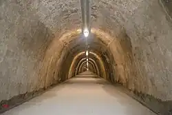 Following the end of World War II, the tunnel was renovated in 1947. Additional work was performed to secure the structure against water damage.[4] In 1949, the tunnel was used as a warehouse by Malina, a food production company.[4][9] A document dating to 31 October 1949 proposed the construction of another corridor connecting the existing one to the area of Gupčeva Zvijezda, about 2 kilometres (1.2 mi) to the north. There is no evidence that this corridor was ever constructed. However, the NDH plan's central hall, measuring almost 100 metres (330 ft) in length, was built sometime after. Emil Matešić, the director of the Cultural Informative Centre of Zagreb (Croatian: Kulturno informativni centar), believed that its construction was driven by the Cold War tensions and carried out in secret with some documents concerning the tunnel not having been released by the Croatian Ministry of Defence as of July 2016.[4]