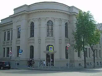 In 1920, Klyachkin became head of the physiotherapy department established at the institute's outpatient clinic, and in 1921, he was appointed head of the newly created physiotherapy department.[83] Organizing a physical treatment methods clinic, Klyachkin established one of the first physiatric clinics in the USSR with an inpatient facility, polyclinic, and hydro-mud and electro-phototherapy departments, based on his former hospital.[84][2][78][80] Two basement rooms in the lazaretto of the Kazan Community of Sisters of Mercy of the Russian Red Cross on Bolshaya Krasnaya Street were allocated for the department and clinic. After Klyachkin's appeal to the Bolsheviks he had sheltered in his clinic, the institute moved to the vacant massive building of the former Peasant Land Bank on Gorshechnaya Street. Klyachkin personally oversaw the design, construction, and equipping of the new scientific-methodological center's premises, complete with its own clinic, scientific staff, and training base for doctors.[85][24][86] He donated all the equipment from his former clinic to the state for the new facility.[80][87]