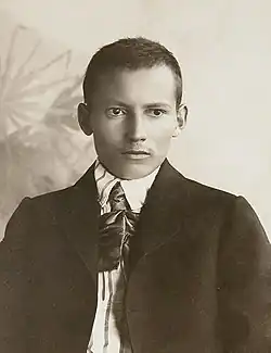 By religion, he was Jewish.[1] His parents were Abram Leibov Klyachkin and his wife Basya.[3] The Klyachkin surname originated from the neighboring town of Klyetsk.[4] His father was a craftsman engaged in furrier work, became wealthy, and rose to the rank of second guild merchant.[1][3] In Nyasvizh, he owned a large house with a garden, governesses, servants, and a carriage.[3] Having the right to live outside the Pale of Settlement, Abram moved the family to Kazan —a city known for its advanced education system— for the sake of his children's well-being.[5] In Kazan, he did not confirm his merchant status and returned to being a furrier.[3] After living in Kazan for about half a century, Abram Klyachkin died in 1917.
