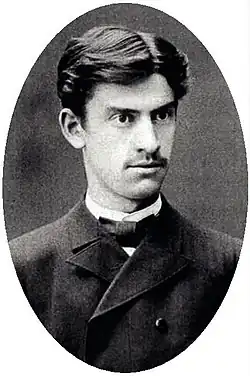 He graduated from the Second Kazan Men's Gymnasium, where, despite a negative note in calligraphy, he received a silver medal, which exempted him from the taxable estate.[3] In 1886, he enrolled in the Medical Faculty of Kazan Imperial University[1] under a five percent quota for Jews without taking an entrance exam.[3] During his studies, he prepared a paper titled Pathological Changes in the Nervous System Under the Influence of Phosphorus Poisoning, which won an award.[1] He graduated from the university in 1891 and began working in Kazan's medical institutions.[2][1] He was accepted into the neurological clinic of Kazan University,[8] having worked for a year as a district doctor in a zemstvo hospital.[3] In 1893, he joined the clinic of neurologist Professor L. O. Darkshevich, where he worked as an unpaid resident, living and studying on his father's funds. In Darkshevich's clinic, where Klyachkin worked for the next four years, his name was Russified from Girsh to Grigory.[3][9]