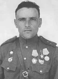 Grigory Trofimovich Skiruta (Russian: Григорий Трофимович Скирута; November 21 [O.S. December 4] 1912 – 9 September 1999, Solnechnogorsk) was a lieutenant colonel of the Red Army during the Second World War. He became a Hero of the Soviet Union during the fighting along the Dniepr River in 1943. He continued to serve well into the postwar era, and was promoted to colonel in 1961, when he went into the reserve.