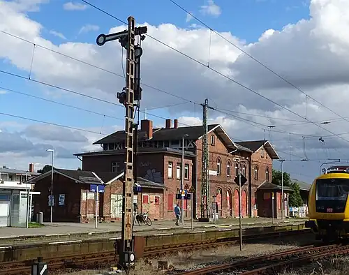 Grimmen station is a railway station in the municipality of Grimmen, located in the Vorpommern-Rügen district in Mecklenburg-Vorpommern, Germany.