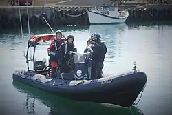 Faroese whaling practices have been challenged by environmental organisations, most notably by the Sea Shepherd Conservation Society, as being cruel and unnecessary, with critics pointing out that the suffering of the animals is not as limited as claimed.[43] Reports on the length of time it takes the mammals to die are extremely variable, ranging from a few second to tens of minutes,[44][45] and that is without touching on the psychological suffering that the animals endure as they are herded into the bays and killed in the presence of each other – a point emphasised by Sea Shepherd,[43] which has also noted that the hunts can wipe out an entire whale pod or dolphin family group.[46] Critics and legal experts also point to the violation of the Faroes Islands of the Convention on International Trade in Endangered Species of Wild Fauna and Flora (CITES) and Berne Convention, which Denmark subscribes to.[47] The State of Denmark has also pushed back on and refused to ratify the International Whaling Commission (IWC) moratorium on commercial whaling.[48] Internationally, animal rights groups have targeted the hunts with protests, boycotts, and occasional direct interventions.[49]