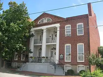 The Grisamore House is a historic home located in downtown Jeffersonville, Indiana. It was built by two brothers from Philadelphia, David and Wilson Grisamore, in 1837. It is a 2+1⁄2-story, Federal style brick double house with Greek Revival style design elements. The front facade features three stucco-coated, two-story Doric order columns in antis and two projecting second story balconies.[2] It has housed several important Jeffersonville families. For example, future president William Henry Harrison gave a speech on the front porch in 1840 while campaigning to become president.