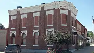 F.H. Whitney established the Bank of Griswold in 1880. Three years later it merged with the recently established First National Bank. The two-story brick building was completed in 1885. The bank operated out of this building until 1930 when it went into receivership.[2]