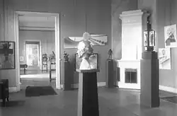 In 1927, the exhibition was run for the first time by the Kartell der vereinigten Verbände Bildender Künstler Berlin. The Cartel had been founded to do justice to the interests of all artists. The exhibition commission was composed of one representative each from various groups and associations, namely the Allgemeine deutsche Kunstgenossenschaft, Ortsverein Berlin (General German Art Cooperative, Berlin chapter), the architects' association Der Ring, the Berlin Secession, the international association of expressionists, futurists, cubists and constructivists Die Abstrakten, the Freie Vereinigung der Graphiker zu Berlin (Association of Graphics Artists of Berlin), the Künstlervereinigung Berliner Bildhauer (Artists' Association of Berlin Sculptors), the November Group, the Verein Berliner Künstler, the Verein der Berliner Künstlerinnen (Association of Berlin Women Artists) and the Frauen-Kunstverband (Women's Art Association). There was also a representative for the artists who did not belong to any of the cartel's associations.[22] The 1927 exhibition included a special exhibition of paintings by Kazimir Malevich. Since Malevich had to return to the Soviet Union early, he gave the pictures to Hugo Häring for safekeeping in his function as treasurer of the exhibition.[23] On the one hand, Malevich hoped for further sales, on the other for a return to Berlin. The pictures embarked on an "odyssey" and never returned to Russia. Of the 73 paintings exhibited, 18 works are now considered lost.