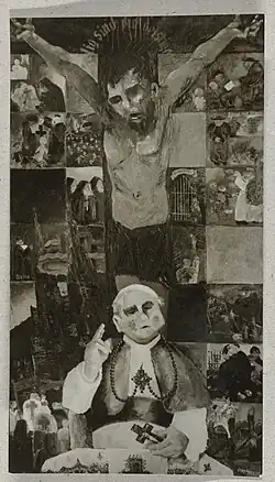In 1930, most of the works submitted by the Dadaist and painter of Berlin nightlife Christian Schad were rejected. A year later, the painting § 218 by Alice Lex-Nerlinger,[26] the wife of Oskar Nerlinger, was confiscated by the police during the exhibition.[27] The controversial painting Selig sind die geistig Armen by Horst Strempel was removed from the exhibition in 1932.