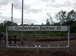 Großenhain Berliner Bahnhof[3] is a railway station in the municipality of Großenhain, Saxony, Germany. It lies on the Dresden-Friedrichstadt-Elsterwerda railway line and the connecting line to Großenhain Cottb Bf, which branches off here. Since 2002 the scheduled rail traffic at the railway station has been discontinued in favour of Großenhain Cottbuser Bahnhof, which is located closer to the city.
