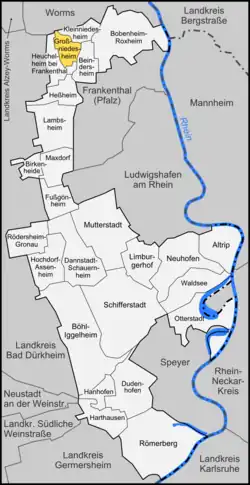Location of Großniedesheim within Rhein-Pfalz-Kreis district ![]() | |