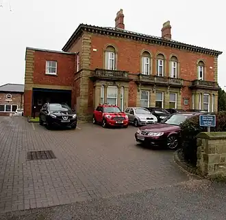 The building is situated on the corner of Regent Street and Grosvenor Road, opposite Wrexham Cathedral.[1] Grosvenor Lodge was built in 1869 as a residence for Isaac Shone, who became Mayor of Wrexham in 1878.[1][2][3][4] It was designed by J.R. Gummow, a local architect, who is credited with most of the suburban development in the southern parts of Wrexham in the 19th century.[5] Shone lost his council seat in 1879 and thereafter vacated the residence and moved to London.[4] It also served as the home of Robert Graesser and his family.[6]
