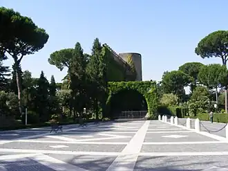 The square front courtyard of the Grotto was the venue, during the 1930s, for a papal guard of honour on the occasion of the oath-taking ceremony of new recruits joining the papal service.[2]