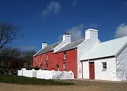 The use of lime mortars began as limewashing. This was applied regularly to walls, and even to thatched roofs.[10] Although the cottage architecture of pre-industrial Wales, particularly in the South and South West, was based on earth walls more than mortared stone masonry, this was still coated externally with a limewash. By the later part of the eighteenth century, this fondness for limewashing and its frequency was noted by many travellers to the area.[11][12] Turf houses though, whilst common, were not limewashed.[10]