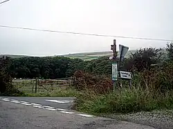 The hamlet of Grumbla along with Higher Grumbla, Lower Grumbla and Grumbla Common is a small area within the parish of Sancreed, to the west of Sancreed Beacon.[3][4] Grumbla lies within the Cornwall Area of Outstanding Natural Beauty.