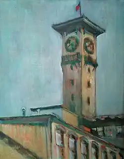 The clock tower, which was built in 1911 and is 168 feet (51 m) tall, was the subject of a 2017 painting by Jean-Marc Dubus, an immigrant from Nice, France, and current resident of Langhorne, Pennsylvania. The painting is on display at the Centre for the Arts in Bristol.