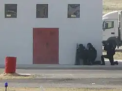 During the 27 years, it has been active, five members of the GEO have died.[4] The unit has had only one casualty in combat, which occurred during the assault on the Leganés flat where the suspected perpetrators of the Madrid train bombings of 11 March 2004 were hiding. Having realized that they were trapped, the terrorists detonated bombs in the flat killing themselves and GEO Subinspector Francisco Javier Torronteras Gadea.[8] This fatality was probably caused by the fact that the agents who entered the flat didn't know that the terrorists could have explosives.[9]