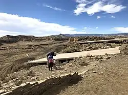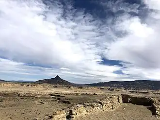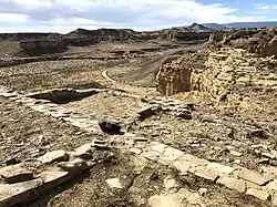 Guadalupe Outlier is an Ancestral Puebloan site in Chaco Culture National Historical Park in New Mexico, United States. The site is described by author Stephen H. Lekson as "sitting atop the second-most spectacular setting of any outlier, a narrow high mesa overlooking the Rio Puerco (Rio Grande tributary), about 100 kilometres (62 mi) from Chaco".[1] Guadalupe Outlier is the easternmost of the Chacoan ruins and was occupied from roughly 920 to 1130 AD.[2] By the late thirteenth century it had been "remodeled and occupied by a Mesa Verde population".[2] The site was excavated by Lonnie C. Pippin between 1972 and 1975 as part of Eastern New Mexico University's Rio Puerco Valley Archaeological Project. The evidence from Guadalupe Ruin reveals some of these Chaco outliers were established only shortly after the initial development of the Great Pueblos in Chaco Canyon. Throughout their histories, these Chaco outliers were closely related to organized developments in Chaco Canyon and were tied to the Great Houses in the canyon by a network of roads. Nevertheless, despite the architectural similarities and networks of communication between Chaco outliers and the Great Pueblos in Chaco Canyon, the occupants of outlying Chaco towns such as Guadalupe Ruin had a material culture like that of the regionally differentiated village populations.[3]