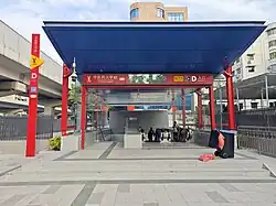Guangzhou University of Chinese Medicine Station (simplified Chinese: 中医药大学站; traditional Chinese: 中醫藥大學站; Cantonese Yale: Zūngjījǒek Dǎaihǒk Jaahm) is a station on Line 11 of the Guangzhou Metro. It started operations on 28 December 2024.[1] It is located underground at the southwest of the intersection of Baiyun Avenue South,[2] Xiatang Road West[3] and Guangyuan Road Middle[4] in Baiyun District. As the name of the station suggests, it is located underground of the Sanyuanli Campus of the Guangzhou University of Chinese Medicine.