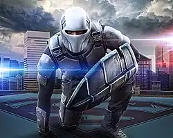 The original Guardian clone moves to Metropolis with Gwen, an adolescent female clone of himself who he rescued.[11] He later becomes the field commander of the Science Police and joins the Justice League.[12][13][14]