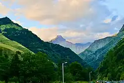 Gudamaqari or Gudamakari[1] (Georgian: გუდამაყარი) is a small historical geographic area in northeast Georgia on the southern slopes of the Greater Caucasus Mountains. Located along the river valley of Aragvi, it is bordered by Mtiuleti on the west, Khevi on the north, Khevsureti and Pshavi on the east, and Khando and Chartali communities on the south. Gudamaqari is sometimes viewed as a part of Mtiuleti. Modern administrative subdivision of Georgia places the area in the Mtskheta-Mtianeti mkhare (region).
