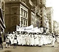 - ^ "Enfranchised are the Norwegian Citizens: Suffrage march in New York 1911" (PDF). Stortinget. Retrieved 19 January 2019.