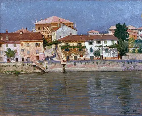 Farina was born in Verona, Italy. He enrolled at the Cignaroli Academy in Verona in 1910 and made his debut in 1918 at an exhibition held by the city's Pro Assistenza Civica organisation. He was associated with the artists of the Burano School in the 1920s and his urban views and landscapes were presented in the show of dissident artists at Ca' Pesaro. His participation in the Venice Biennale began by invitation in 1924 with the 14th Esposizione Internazionale d'Arte della Città di Venezia. He was closely associated with the Novecento Italiano movement in this period and took part in the group's first and second exhibitions (Milan, 1926 and 1929). His first solo show was held in 1931 at the Galleria del Milione, Milan, and he took part in the Prima Quadriennale Nazionale d'Arte in Rome, where the Galleria Mussolini bought one of his works. He made frequent trips to Paris as well as Britain, Germany, Switzerland and Austria. He also worked in the fields of decoration and fresco (Verona, Museo di Castelvecchio, 1925–1929, and Palazzo del Podestà, 1929–1930).