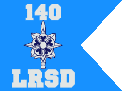 Navy ships and squadrons may display a unit guidon while parading ashore. It measures 20+1⁄8 by 27+3⁄4 inches (51 cm × 70 cm) with a 10 inches (25 cm) swallowtail, is blue with white text, and depicts a fouled anchor within a diamond (identical to the insignia of the Naval Infantry Flag).[16] Prior to World War II, a red flag was used for naval artillery units. Companies of the Brigade of Midshipmen attending the United States Naval Academy carry a gold guidon with blue numerals.[17][18] Officer Candidate School Companies carry blue guidons with white lettering and a white bulldog.[19]