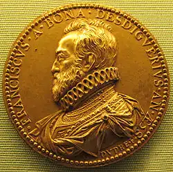 Dupré was born in Sissonne. He was initially trained by the sculptor Barthélemy Prieur, and in 1600 he married Prieur's daughter.[1] They had a son, Abraham, who also became a medal engraver. Dupré applied his artistic skills into producing medals, in particular for Henry IV of France. In 1603 he was named Sculpteur Ordinaire du Roi, and the following year was promoted to Contrôleur Général des Poinçons et Effigies des Monnaies de France. Dupré's success continued, and in 1611 he was awarded the title Premier Sculpteur du Roi.[1] During his career he engraved medals for Henri IV, Louis XIII and the beginning of the reign of Louis XIV. He died in Paris in 1643.