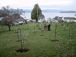 Farm owner Andrew Butt planted his first olive tree in 2001 at his farm on Pender Island, using Frantoio and Leccino cultivars that he obtained from California.[10] He uses kelp obtained from the surrounding straits as fertilizer and uses a pruning method that enhances the sunlight exposure on the trees.[10] Michael Pierce and colleagues established an olive tree nursery on Saturna Island in 2009 that supplied olive trees to the region.[11]