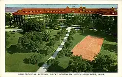 Jones, along with other investors, formed the Bradford Construction Company to buy the bankrupt railroad and pursue the investment opportunity in Mississippi. The longest section of the G&SIRR was completed by the Bradford Construction Company of Pennsylvania, under the leadership and financing of J.T. Jones. In 1901, Jones bought out his partners, and the Bradford Construction Company merged with the Gulf and Ship Island Railroad Company.[6] In need of a residence on the Gulf Coast, Jones had the Great Southern Hotel constructed at Gulfport. Nearby, a new office building was constructed for the Gulf and Ship Island Railroad Company.