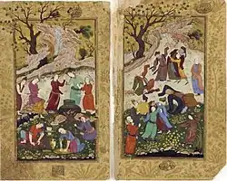 Gulistān (Persian: گُلِستان, romanized: Golestān, lit. 'The Rose Garden'; [golestɒːn]), sometimes spelled Golestan, is a landmark of Persian literature, perhaps its single most influential work of prose.[1] Written in 1258 CE, it is one of two major works of the Persian poet Sa'di, considered one of the greatest medieval Persian poets. It is also one of his most popular books, and has proved deeply influential in the West as well as the East.[2]
