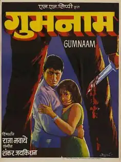 Gumnaam (translation: Anonymous) is a 1965 Indian Hindi-language mystery film directed by Raja Nawathe and produced by N. N. Sippy. The film was released in India on 24 December 1965 and stars an ensemble cast of Manoj Kumar, Nanda, Mehmood, Pran, Helen, Madan Puri, Tarun Bose, Dhumal and Manmohan. The film is a loosely inspired adaptation of Agatha Christie's 1939 mystery novel And Then There Were None and was remade in Tamil as Naalai Unathu Naal (1984). In the film, eight people (six men and two women) find themselves stranded on a remote island after winning a contest. As soon as they settle down in an eerie mansion with a strange butler, the guests begin to get murdered one after the other.[1][2]