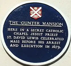 In 1678, with the outbreak of the Popish Plot, a Jesuit priest, David Lewis was arrested at St Michael's Church, Llantarnam. He prayed in the Gunter Mansion chapel before being executed in Usk.[1]