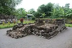 ![]() The ruin of the main temple of Canggal, only the base and a Yoni remain, the body and roof parts are missing. | |