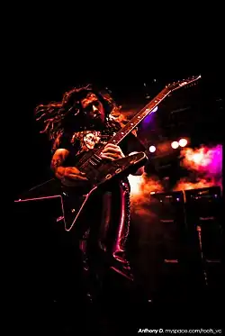 Konstantinos Karamitroudis[1][2] (born 12 September 1980), better known as Gus G, is a Greek heavy metal guitarist. He currently plays with his band Firewind. He has also played in Mystic Prophecy, Nightrage, Arch Enemy, Dream Evil and Ozzy Osbourne's band.
