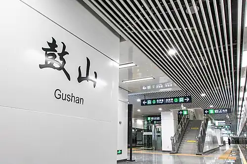 Gushan Station (Chinese: 鼓山站; pinyin: Gǔshān zhàn; Fuzhounese: [ku˨˩ laŋ˥˥]) is a metro station of Line 2 of the Fuzhou Metro. It is located near Gushan Scenic Spot, Jin'an District, Fuzhou, Fujian, China. It started operation on April 26, 2019.[1]